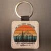 Porte-clés carré imprimé montagne, dégradé de couleurs, fond blanc, cuir synthétique.