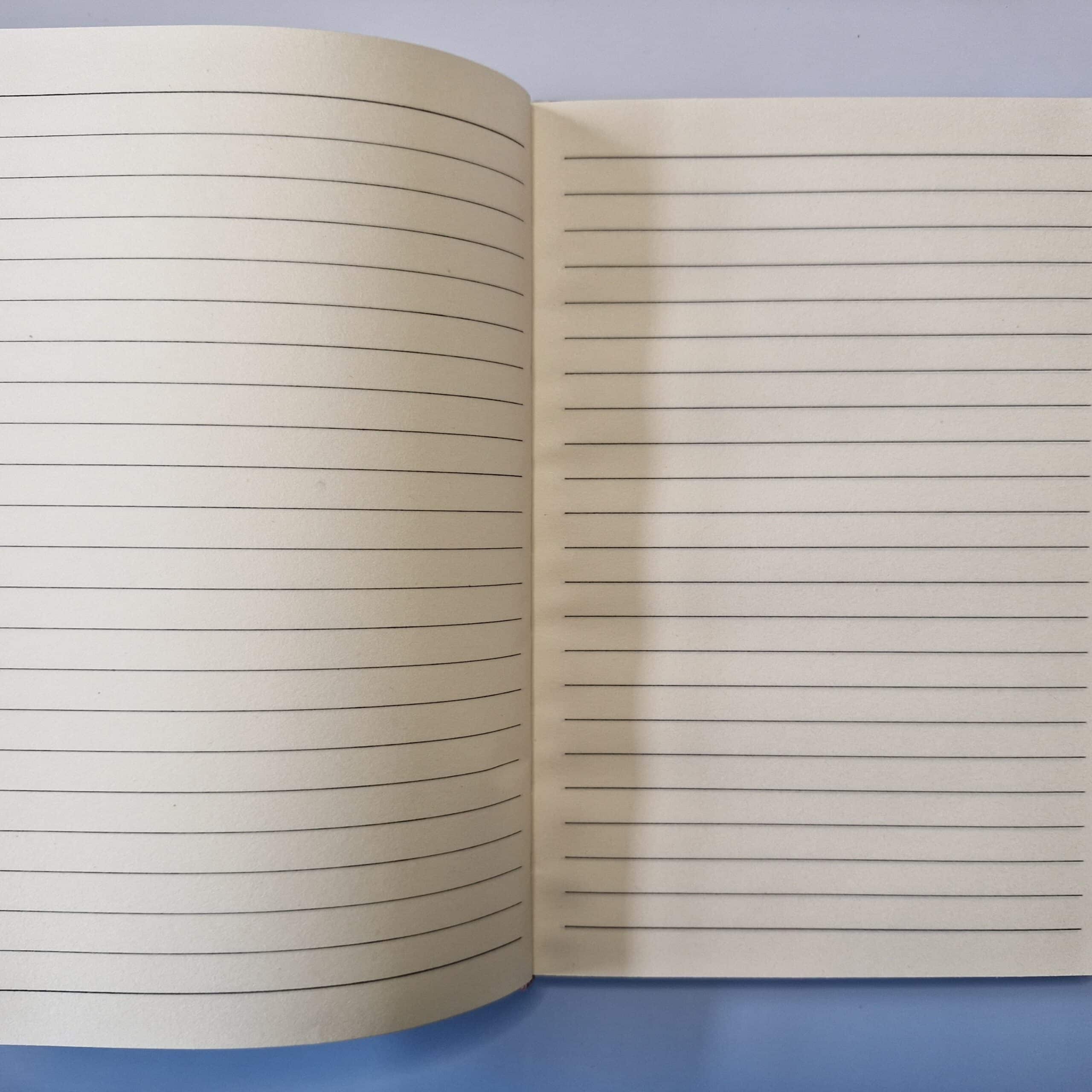 Carnet A5 à couverture rigide en PU touché gomme, avec fermeture élastique et marque-pages. Il contient 192 pages lignées papier ivoire.