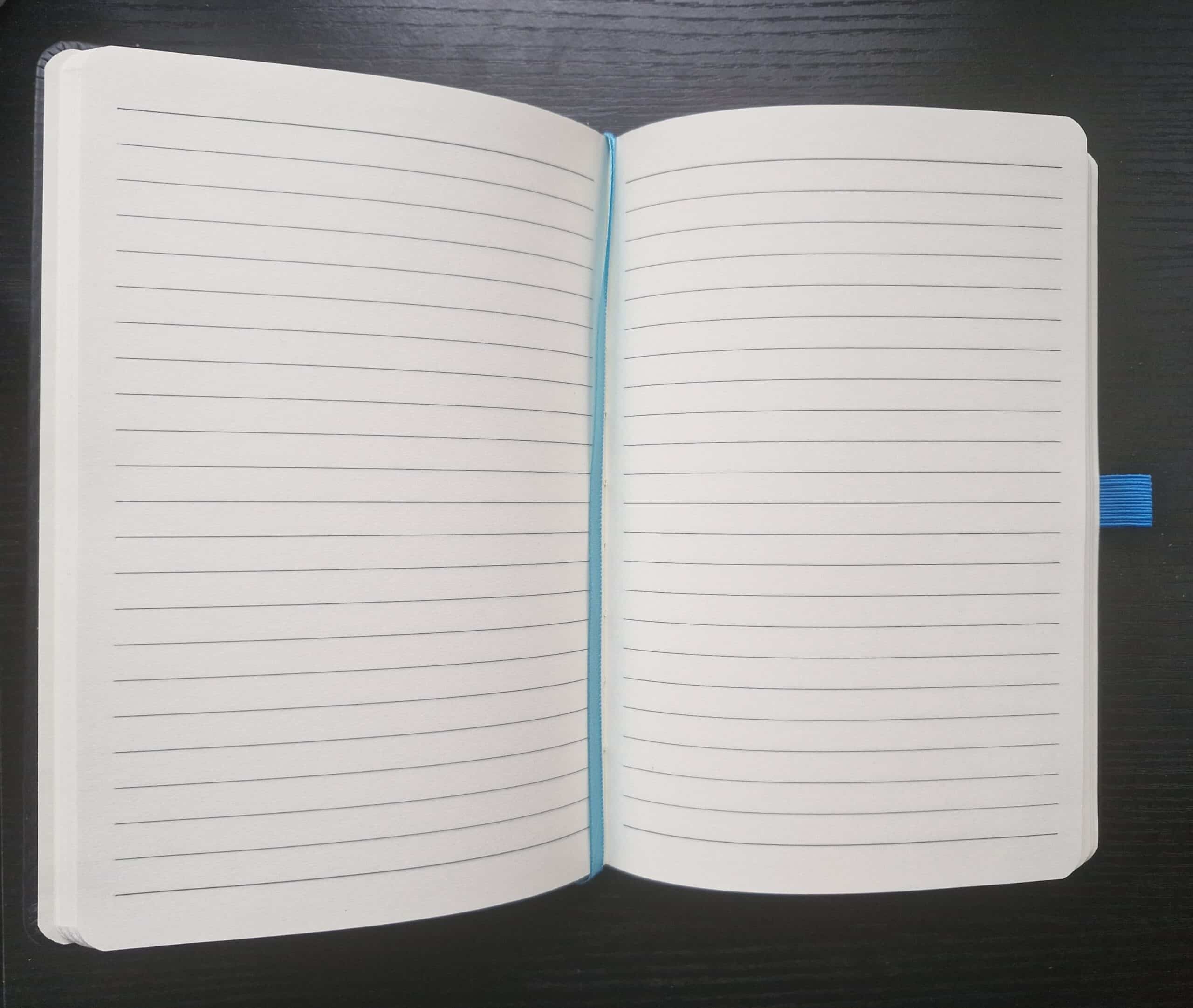 Carnet A5 couverture noire en PU, fermeture élastique, 192 pages lignées 70g. Il est doté d’un ruban marque-pages bleu turquoise assorti au gravage et d’un porte-stylo (stylo non inclus).