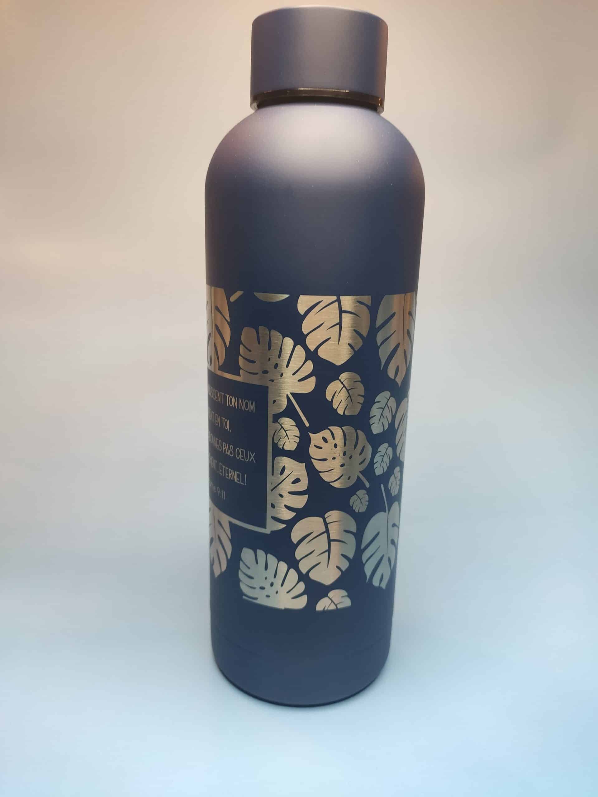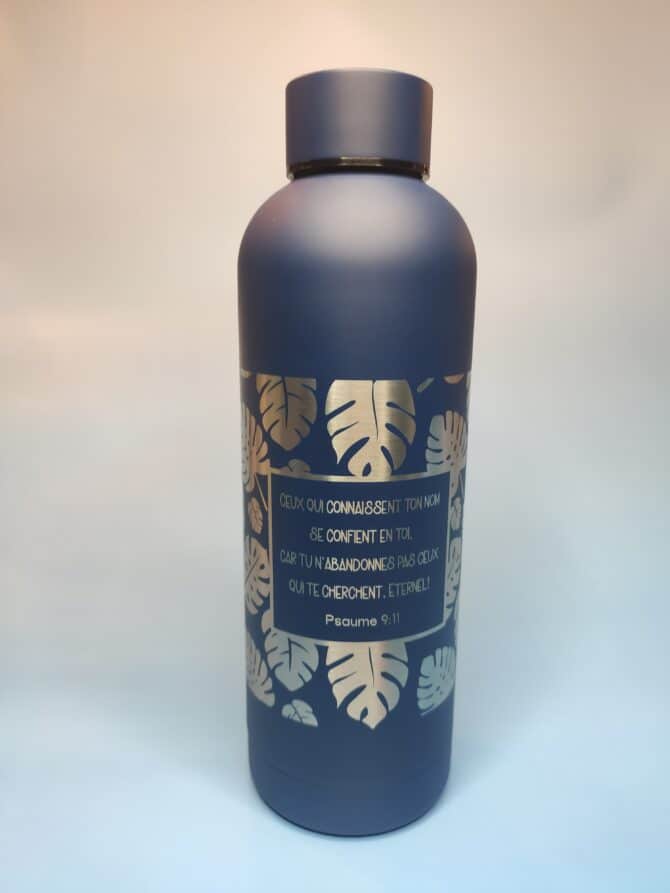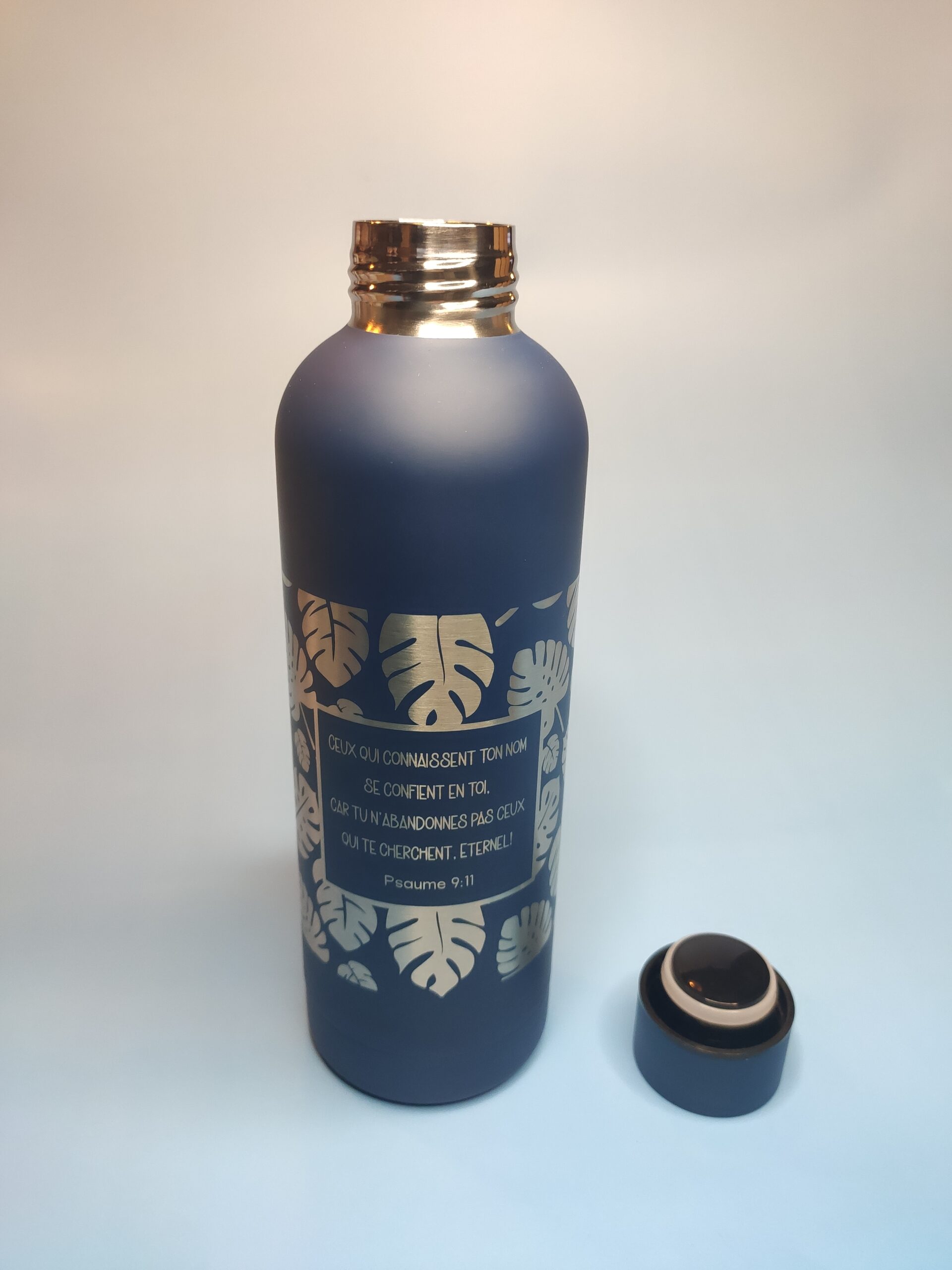 Bouteille isotherme bleu foncé, bouchon à vis.