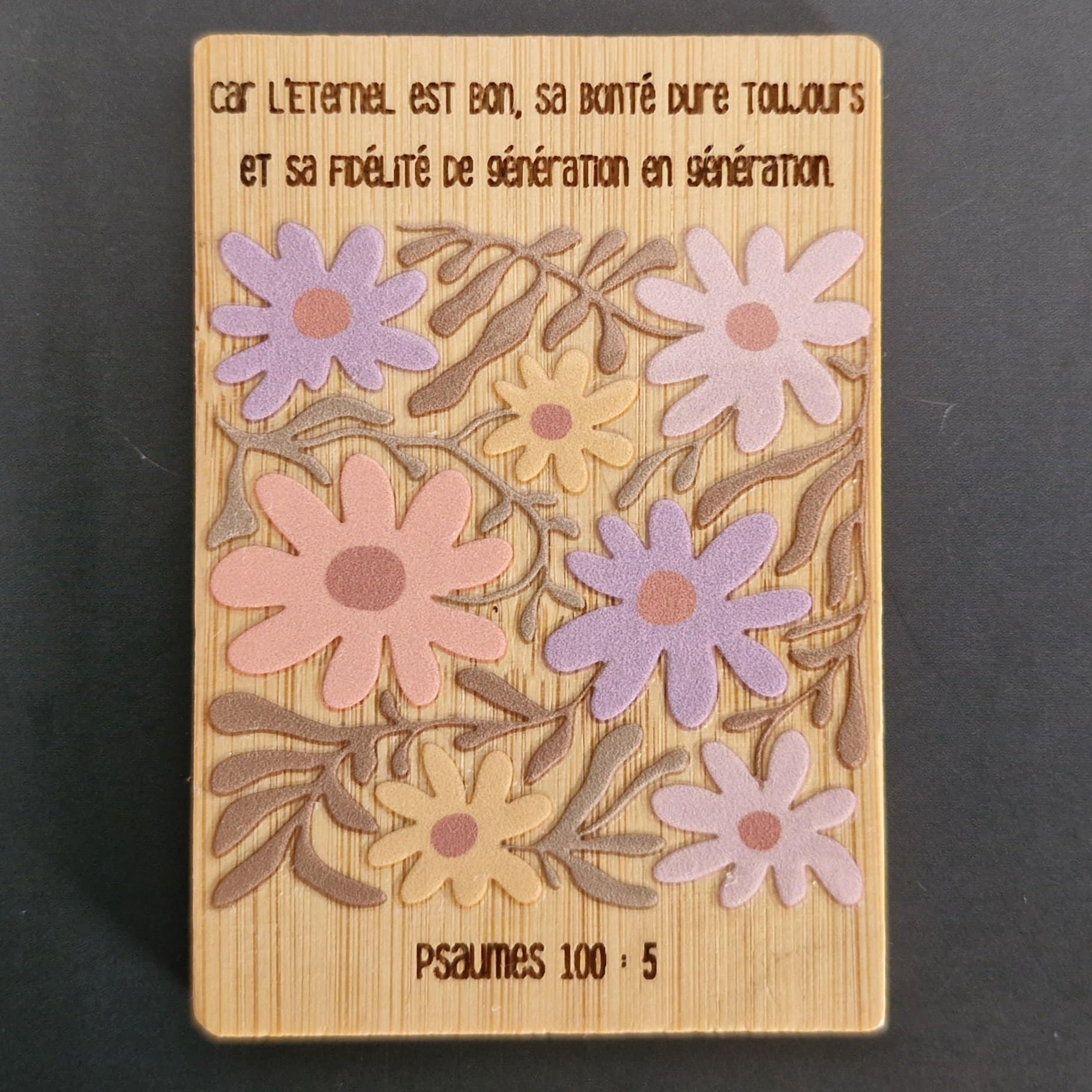 Verset gravé : « Car l’Eternel est bon, sa bonté dure toujours et sa fidélité de génération en génération. » Psaumes 100 : 5