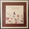 Cadre au format 20x20cm, passe-partout bordeaux, protection verre, baguette PVC blanche. Il peut être posé sur un meuble ou accroché.