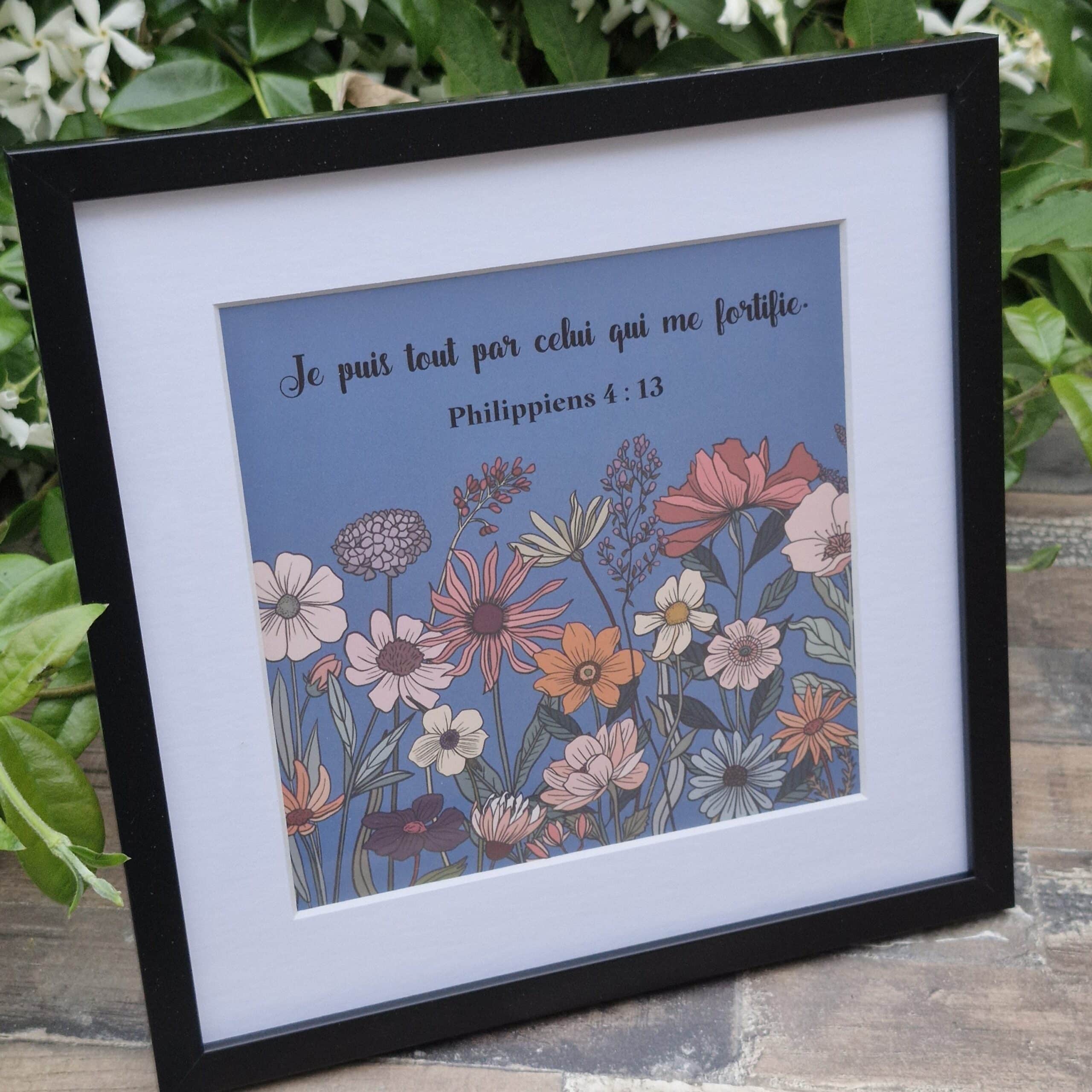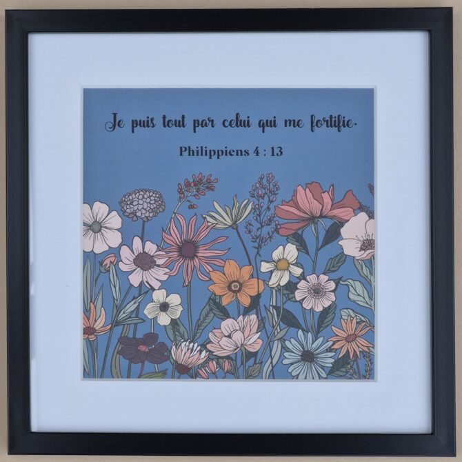 Illustration fleurs, verset : « Je puis tout par celui qui me fortifie.  » Philippiens 4 : 13